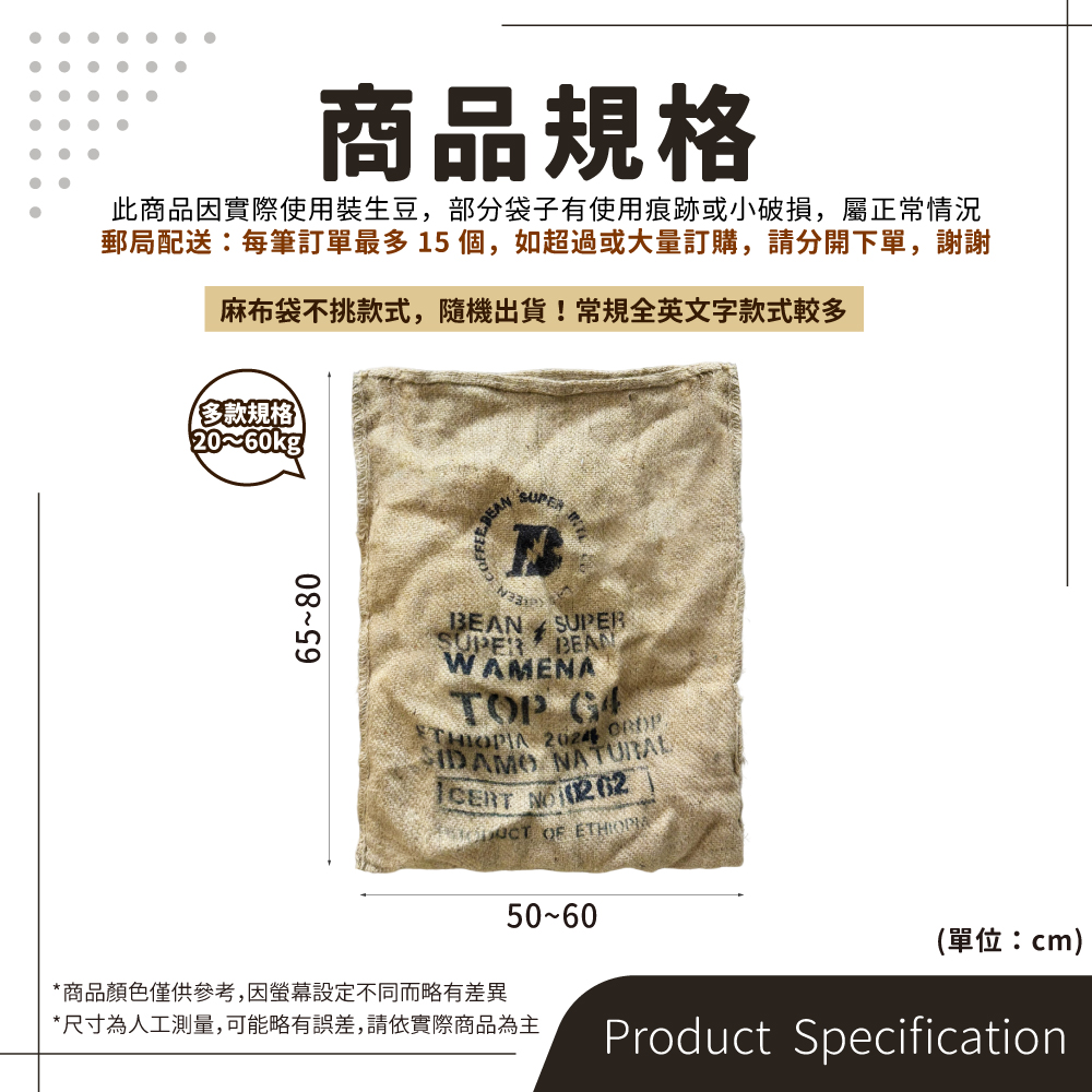 ⚠ 麻袋未清洗整理,有生豆與麻袋本身的「異味」。